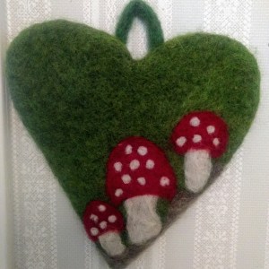 Nål- och våttovat ullhantverk mixat med lite trä och metall.