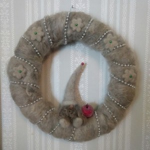 Nål- och våttovat ullhantverk mixat med lite trä och metall.