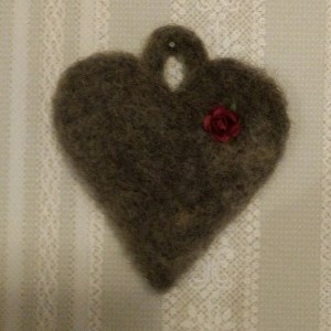 Nål- och våttovat ullhantverk mixat med lite trä och metall.